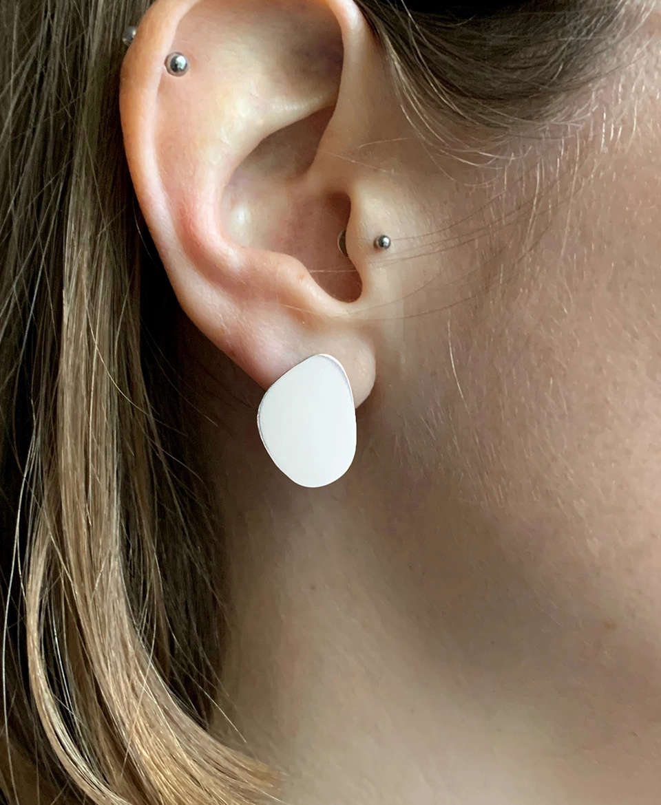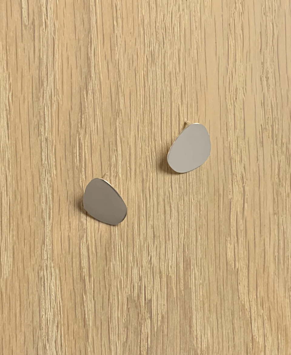 Mirror polished earrings, made from recycled sterling silver, resembling organically shaped puddles of water.