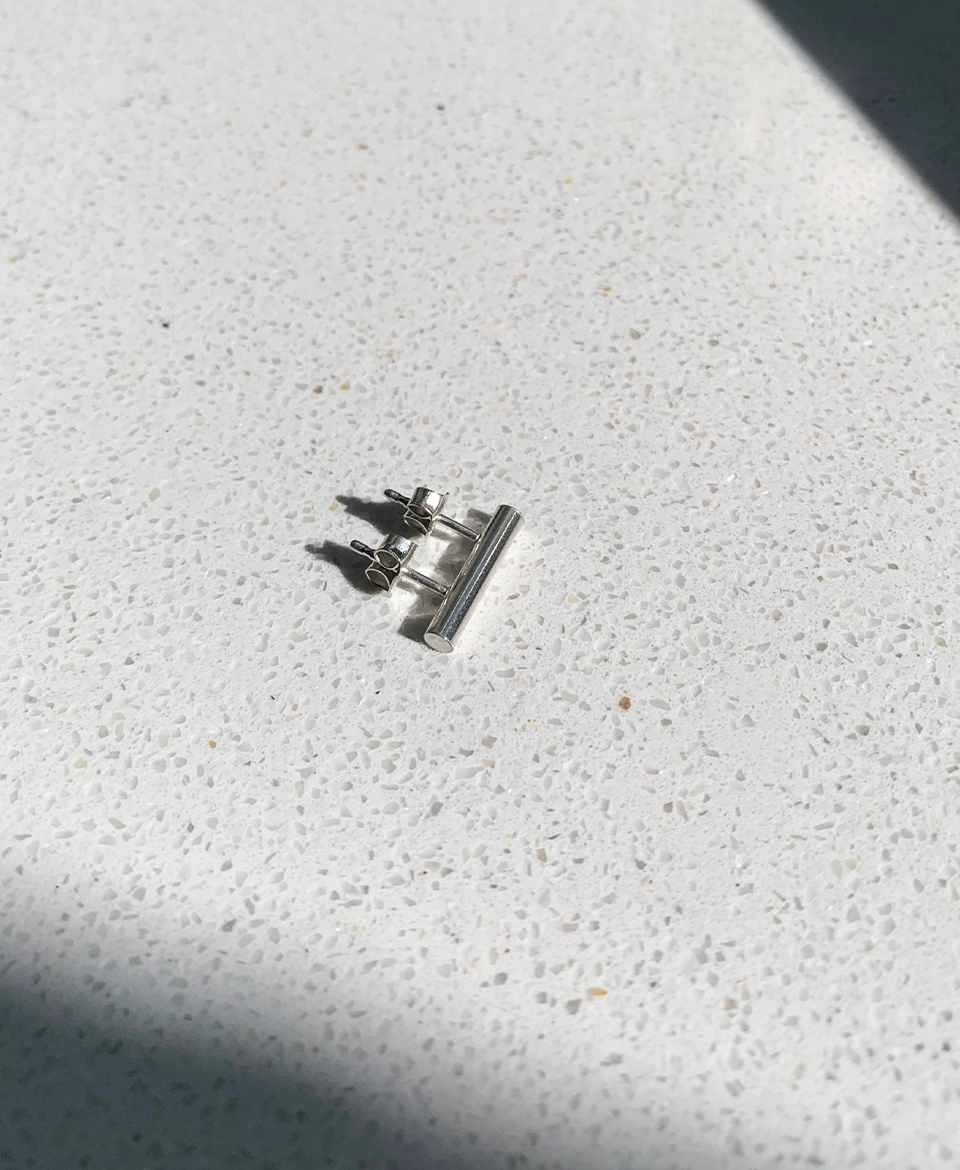 Earring made from a 3 mm solid recycled sterling silver wire. This earring is designed for a double pierced ear (first image) or a single pierced ear (third image), let us know the dimensions in between ear posts in the order note.